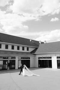 Chris kept wiping away tears with his right hand, then stopping to murmur how beautiful she looked–it was his first glance at his bride ready for the wedding day. His eyes welled up each time her took her in again – his bride alone with him in an alley of St. Paul, soon to marry him at Irvine Park. The bold blue of his tuxedo framed her white train and gown perfectly in the white alley.